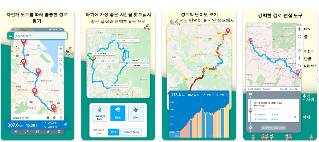 - 경로 생성 및 편집: 자신만의 라이딩 루트를 쉽게 만들 수 있습니다.